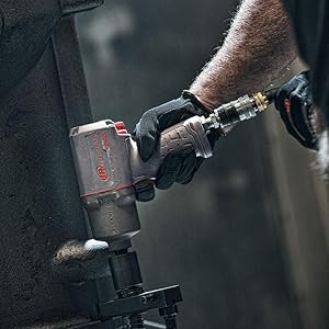 Featuring the best power-to-weight ratio of any impact wrench on the market, the Ingersoll Rand 2235TiMAX 1/2-Inch Drive Air Impact Wrench is built to tackle the toughest bolts. This powerful, durable impact wrench packs up to 1,350 foot-pounds of nut busting torque into a compact and lightweight design. Weighing only 4.6 pounds, it allows you to work for longer stretches of time with less user fatigue. The four-position power regulator and one-handed forward & reverse push button give you the control and versatility needed to tackle a variety of automotive and industrial jobs. And thanks to its titanium hammer case and rugged composite housing, this impact wrench is tough enough to endure the harshest working environments--from garages to demanding industrial job sites. Every component, mechanism, and function has undergone rigorous testing to ensure its premium performance and this tool is backed.